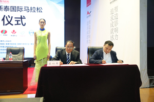 10月8日, “澤華杯”2018新泰國(guó)際馬拉松新聞發(fā)布會(huì)在泰安召開。本次賽事是由新泰市人民政府主辦,新泰市體育局、新泰市青云街道辦事處、新泰市環(huán)保局、新泰市旅游局、新泰市體育總會(huì)、泰安傳媒體育有限公司承辦,山東澤華置業(yè)集團(tuán)有限公司全程冠名。新泰市人民政府副市長(zhǎng)周典紅,新泰市政府應(yīng)急辦公室副主任劉祿新,新泰市體育局黨委書記、局長(zhǎng)韓春華,新泰市公安局黨委副書記楊德軍,泰安傳媒集團(tuán)副總經(jīng)理徐國(guó)新,山東澤華置業(yè)集團(tuán)有限公司黨委書記田清坤出席了新聞發(fā)布會(huì)。