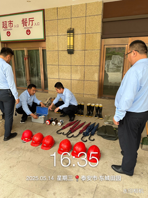 實地檢查防汛物資過程中,檢查小組現(xiàn)場清點核對鐵鍬、照明燈、雨衣、雨靴等物資數(shù)量,并對地下車庫出入口沙袋進(jìn)行檢查,查看是否有破損情況,數(shù)量是否充足。除此之外,檢查組還對抽水泵、照明設(shè)備等物資進(jìn)行調(diào)試,確保物資完好,使用正常,能夠隨時投入使用。